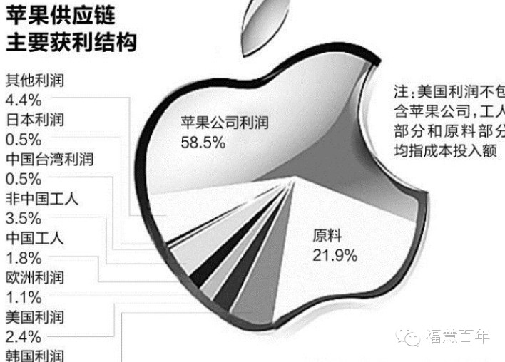 可蘋果留給我們的利潤(rùn)卻少的可憐。以iPhone利潤(rùn)分配為例,蘋果公司占有58.5%的利潤(rùn),甚至我們的鄰居韓國(guó)因?yàn)楦绹?guó)關(guān)系友好,也占據(jù)了4.7%的利潤(rùn);而中國(guó)勞工內(nèi)地只占了1.8%。