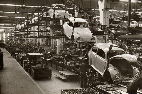 下圖是大眾汽車 1969 年的生產(chǎn)流水線,自動(dòng)化程度比現(xiàn)今國內(nèi)很多車廠的自動(dòng)化程度都高。生產(chǎn)流程化的核心目的就是把生產(chǎn)過程切分成非常細(xì)小的片段,每個(gè)片段都遵循嚴(yán)格的順序加工,片段之間用自動(dòng)化的傳動(dòng)裝置連接起來,每個(gè)片段簡(jiǎn)單到不需要人工操作的時(shí)候,就被機(jī)器取代了。另一個(gè)行業(yè)的例子,說起軟件公司,大家都記得微軟之類的美國公司,但是做流程軟件最成功的卻是德國的 SAP,他們把企業(yè)(甚至非生產(chǎn)型組織)內(nèi)部所有流程都固化到軟件里面,把企業(yè)里面每個(gè)人都通過軟件固化到一個(gè)功能,最后完成了企業(yè)的可靠高效運(yùn)作,這就是流程化的威力。(我想企業(yè)里面用過 SAP 的 ERP 系統(tǒng)的人,特別是財(cái)務(wù)采購之類的肯定特別熟悉)