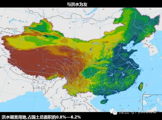 我們第一個(gè)要改變的就是對(duì)待水的態(tài)度,與洪水為友。這是我跟我的學(xué)生做了一個(gè)研究,結(jié)果表明,即使我們把所有防洪堤、所有大壩全部都炸掉,洪水能夠淹掉的國土面積才0.8%,極端情況下才淹掉6.2%。
