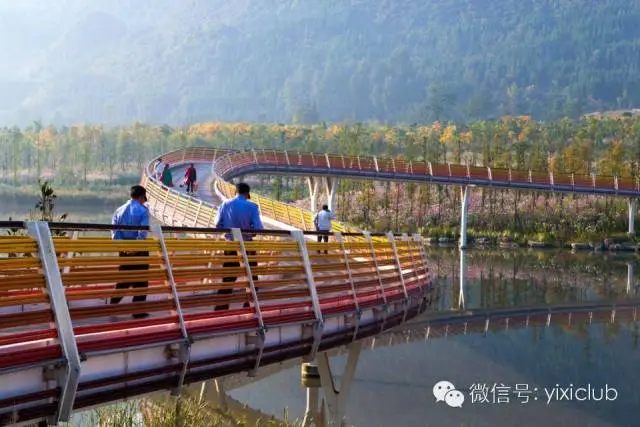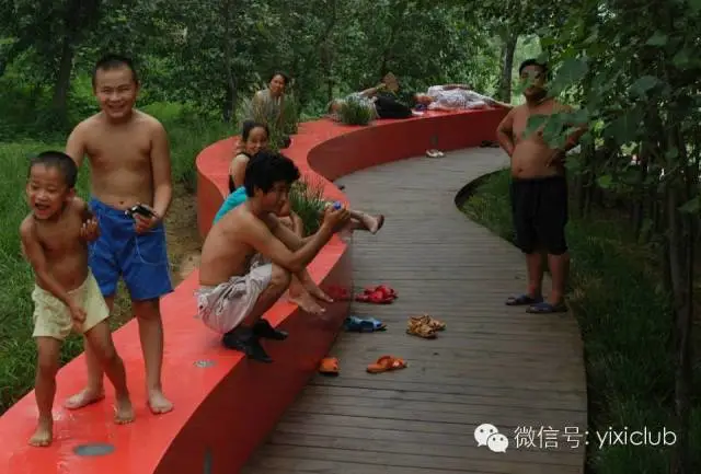 最后我們只做了人需要的一條紅色飄帶。這個(gè)飄帶實(shí)際上是一條椅子,這條椅子你可以坐著休息,躺著休息,底下有燈光,而周邊全是自然的,地形仍然是原來的地形,樹還是原來的樹,野草還是原來的野草。