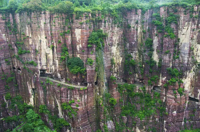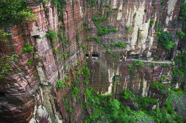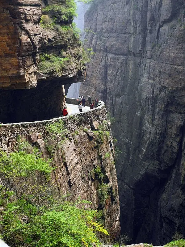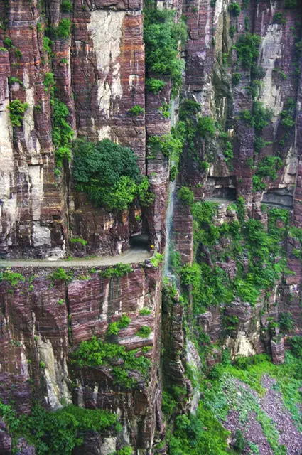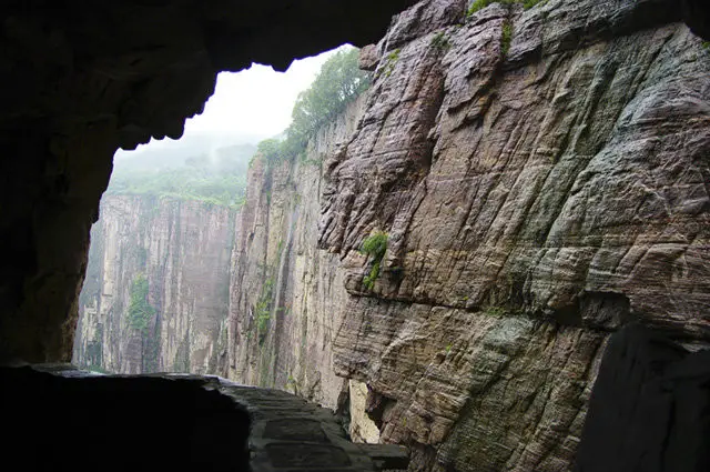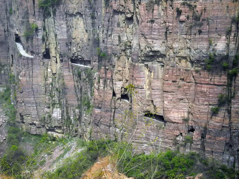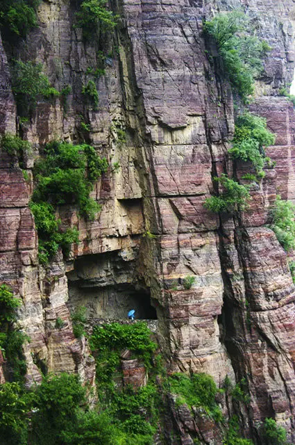 郭亮絕壁與太行山斷層同屬砂質(zhì)沉積巖,硬度達(dá)到8.3級,整個隧道全憑手工打造,困難程度可想而知!