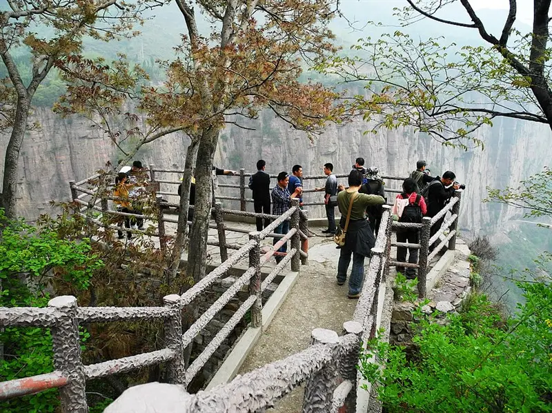 在未打通郭亮洞之前,要進(jìn)郭亮村必得穿行太行大峽谷,走天梯,天梯十分險峻崎嶇,遂使郭亮村成為與世隔絕的山中村落。