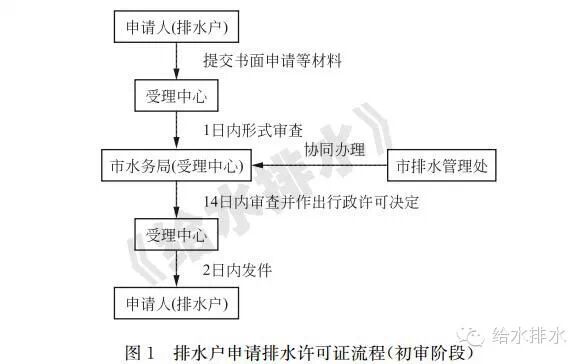 “方案”是排水許可申領(lǐng)初審階段的關(guān)鍵技術(shù)材料。此“方案”需結(jié)合項(xiàng)目建設(shè)背景和所處區(qū)域排水情況,對(duì)雨污水排放的水量、水質(zhì)、排放口位置加以說(shuō)明并進(jìn)行可行性分析,為核發(fā)《排水許可證》事項(xiàng)的科學(xué)審批提供技術(shù)依據(jù)!掇k事指南》規(guī)定的《排水許可證》申請(qǐng)流程(初審階段)見(jiàn)圖1。規(guī)定初審應(yīng)當(dāng)提交下列材料:申請(qǐng)表及申請(qǐng)人身份證明;建設(shè)項(xiàng)目批準(zhǔn)文件;初步設(shè)計(jì)文本節(jié)選;排水接納方案;地形圖和地下綜合管線圖(1/500);自設(shè)污水處理裝置需提供污水處理設(shè)施設(shè)計(jì)文本等。“方案”是對(duì)建設(shè)部管理辦法規(guī)定提交技術(shù)材料的整合和分析提煉,從而提高排水許可審批的科學(xué)性和高效性。自2006年以來(lái),審批部門(mén)已累計(jì)審查“方案”并發(fā)放排水許可3000余項(xiàng)。via《給水排水》雜志