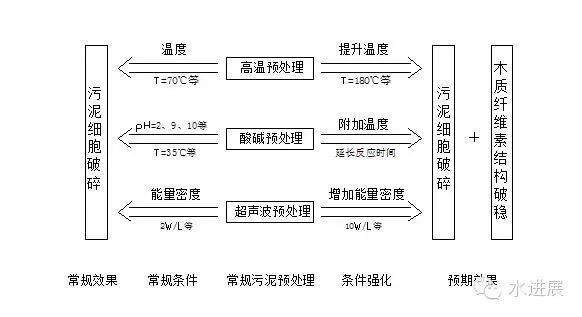 因此,在厭氧消化系統(tǒng)外對(duì)污泥細(xì)胞破壁和木質(zhì)纖維素結(jié)構(gòu)破穩(wěn)顯得非常重要。只有這樣,方能使細(xì)胞內(nèi)有機(jī)質(zhì)(蛋白質(zhì)、多糖、酶等)得以釋放,木質(zhì)纖維素復(fù)雜、穩(wěn)定的結(jié)構(gòu)才會(huì)打碎而變成容易水解的小分子有機(jī)結(jié)構(gòu)。細(xì)胞破壁和木質(zhì)纖維素破穩(wěn)所采用的預(yù)處理技術(shù)原理完全相同,主要是通過熱解、超聲波、酸解、堿解或這幾種方法的聯(lián)合方式予以實(shí)施,只不過兩者的預(yù)處理所應(yīng)用的工藝條件不同而已。這樣看來,細(xì)胞破壁和木質(zhì)纖維素破穩(wěn)在預(yù)處理階段可以合二為一,只要選擇同時(shí)能滿足兩者的預(yù)處理工藝條件。