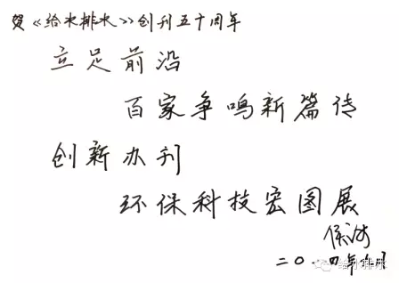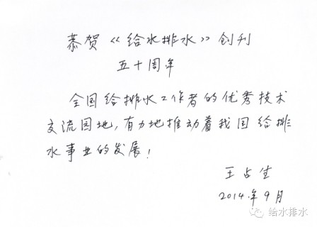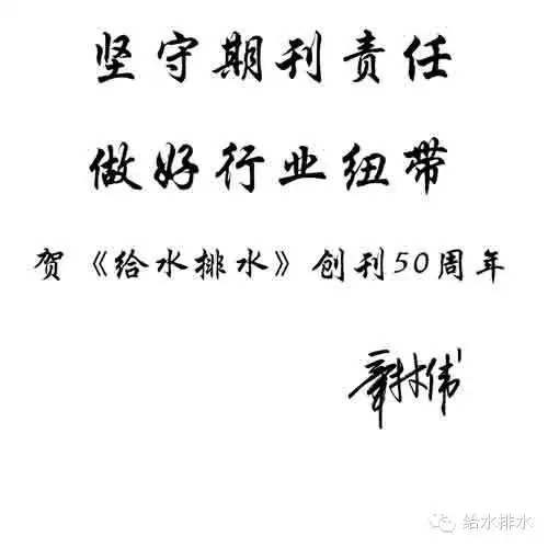 賀《給水排水》創(chuàng)刊50周年專家、領(lǐng)導(dǎo)題詞