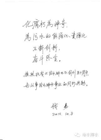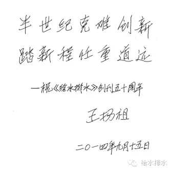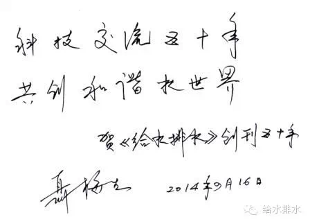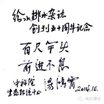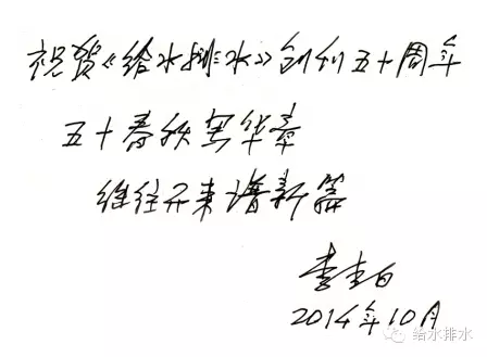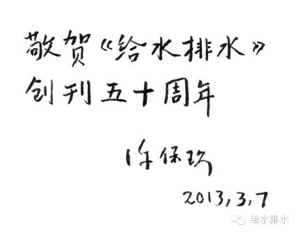 熱烈祝賀《給水排水》創(chuàng)刊五十周年,與從事給水排水事業(yè)的同行共勉。