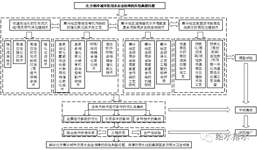 本課題的研究思路是以工程應(yīng)用為目標,以關(guān)鍵技術(shù)創(chuàng)新和實用技術(shù)集成為核心,以示范工程為依托,以標準體系為指導(dǎo),解決我國寒冷地區(qū)飲用水供水面臨的主要問題,保障寒冷地區(qū)飲用水安全。