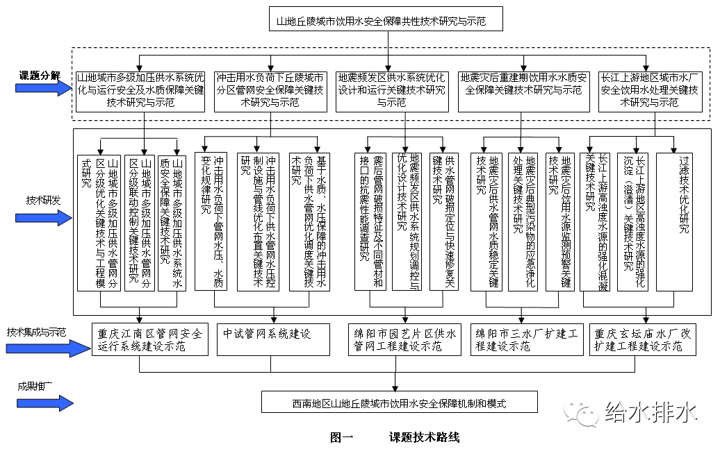 課題技術(shù)路線總的原則是:結(jié)合地方需求,研發(fā)關(guān)鍵技術(shù);支撐示范工程,創(chuàng)建技術(shù)體系;保障飲水安全,實現(xiàn)跨越發(fā)展。
