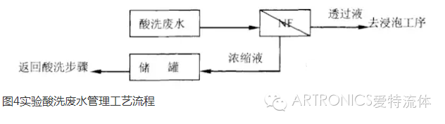 制革廢水含有高濃度的有機(jī)物、硫酸鹽和氯化物,酸洗工序的廢液電導(dǎo)值達(dá)到75 mS/cm。Bes-Pia采用NF技術(shù)回收了制革廢水,所得到的高濃度硫酸鹽濃水回到酸洗段,而氯化物的產(chǎn)水打回裂化反應(yīng)鼓,簡(jiǎn)單操作流程如圖4。