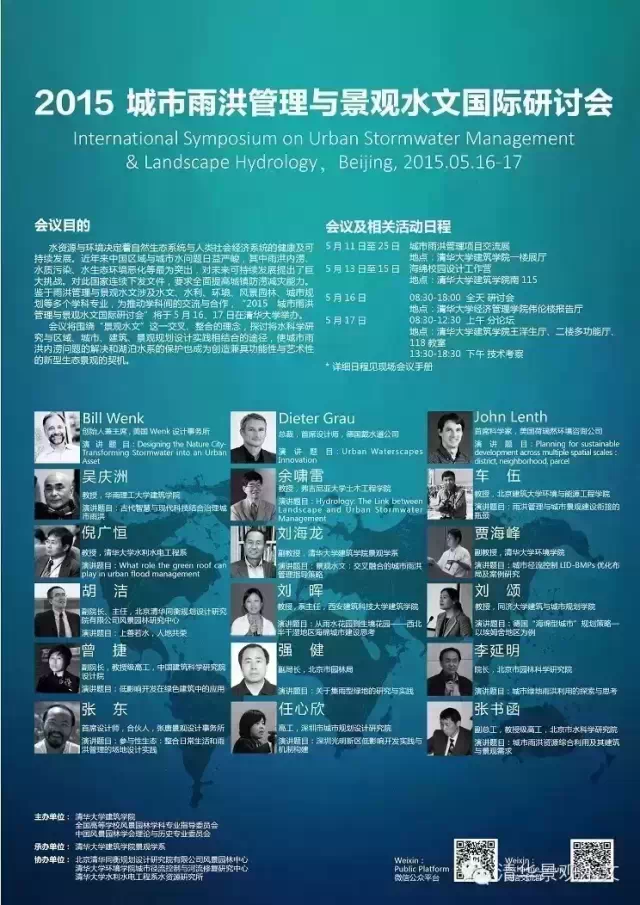 2015年5月17日上午,“2015城市雨洪管理與景觀水文國(guó)際研討會(huì)”的分論壇1——人居環(huán)境與可持續(xù)雨水景觀設(shè)計(jì)研究,在清華大學(xué)建筑學(xué)院王澤生報(bào)告廳成功舉行。