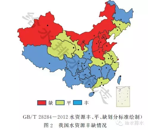 一是水資源短缺。我國(guó)水資源匱乏(見圖2),人均水資源量不足世界平均水平的1/4。城市快速發(fā)展對(duì)水資源需求大,城市開發(fā)建設(shè)過(guò)度硬化造成降雨形成徑流外排,導(dǎo)致地下水補(bǔ)給不足,同時(shí)地下水過(guò)度開采,使城市形成大范圍的地下水漏斗,加劇了水資源的緊缺。