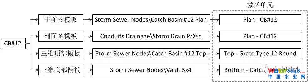 打開前述cell,較為快捷的修改方式如下:制作上述三個激活單元以及CB#12文件副本,并進(jìn)行相應(yīng)的重命名,參照圖集或者CAD圖紙繪制井類,重新建立圖7.1中的鏈接,完成雨水口的自定義。