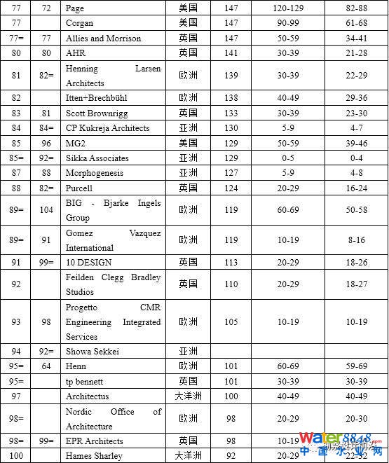 世界建筑設(shè)計(jì)100強(qiáng)排名