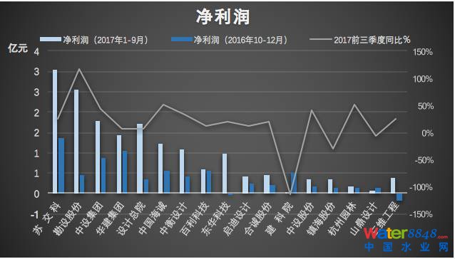 注:數(shù)據(jù)來(lái)源公司2016年報(bào)和2017三季報(bào),由于城建設(shè)計(jì)未披露三季報(bào),其最近4個(gè)季度的凈利潤(rùn)并沒有反映在圖中,本文城建設(shè)計(jì)凈利潤(rùn)數(shù)據(jù)的統(tǒng)計(jì)區(qū)間均為2016年6月至2017年6月。