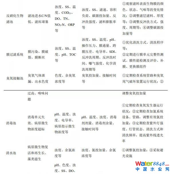 具體而言,針對某一處理單元,再生水廠應根據(jù)其后續(xù)處理單元的進水水質(zhì)要求,確定其管理目標,以保證后續(xù)處理單元的穩(wěn)定高效運行。例如,若采用反滲透處理單元生產(chǎn)A級再生水,由于反滲透膜孔徑小,極易堵塞且難以清洗,需要高水平的預處理。預處理單元一般包括:混凝沉淀、介質(zhì)過濾、超(微)濾等,預處理單元的水質(zhì)管理目標應符合其后續(xù)反滲透單元的進水水質(zhì)要求。