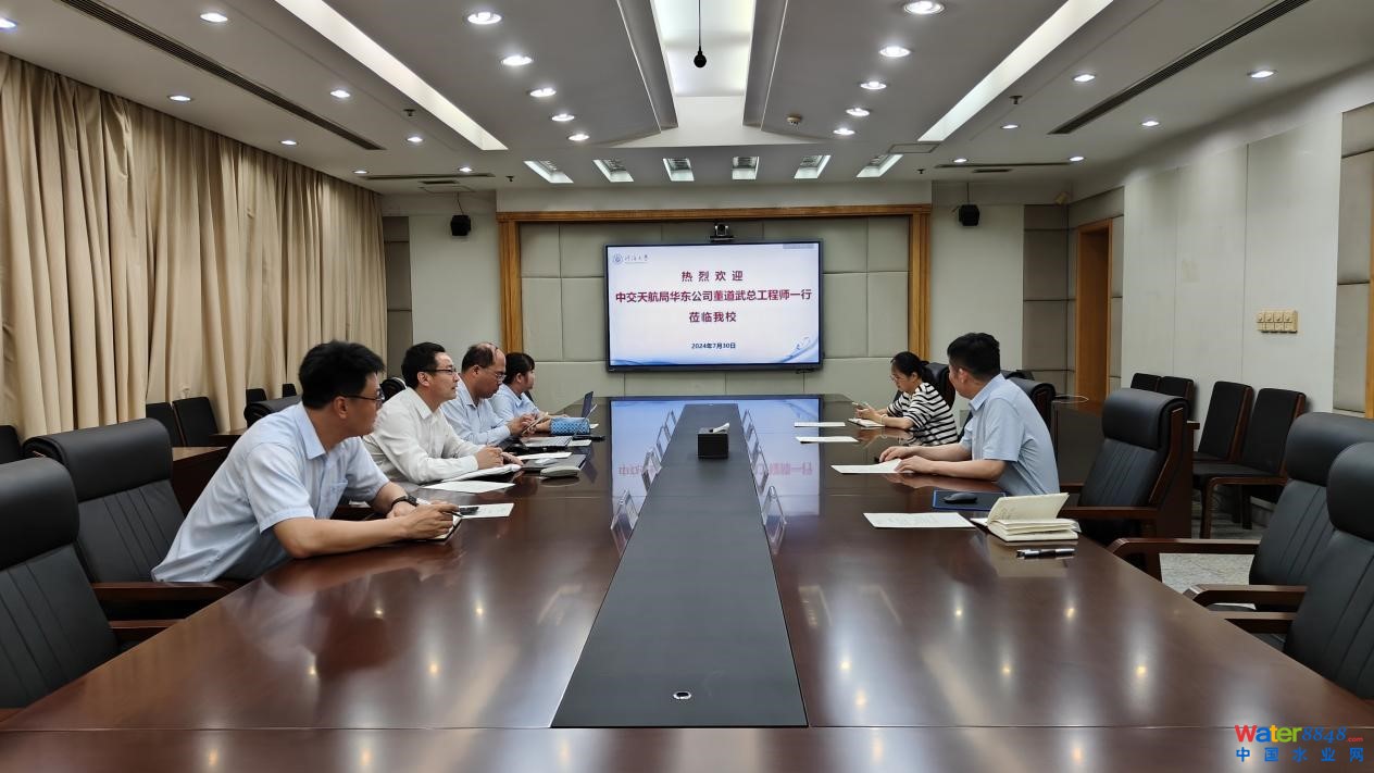 近日,中交天航局華東公司董道武總工程師一行來河海大學對接交流?萍继幪庨L沈德建主持會議。